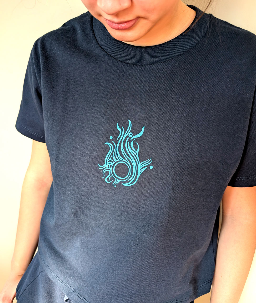 These tees are individually silkscreened with a custom illustration in my home studio using professional-grade Jacquard silk-screening ink and heat-set for durability. The tees are heavy-duty 6oz cotton, soft to the touch, but durable for any activity. They come in boxy and oversized crop styles.